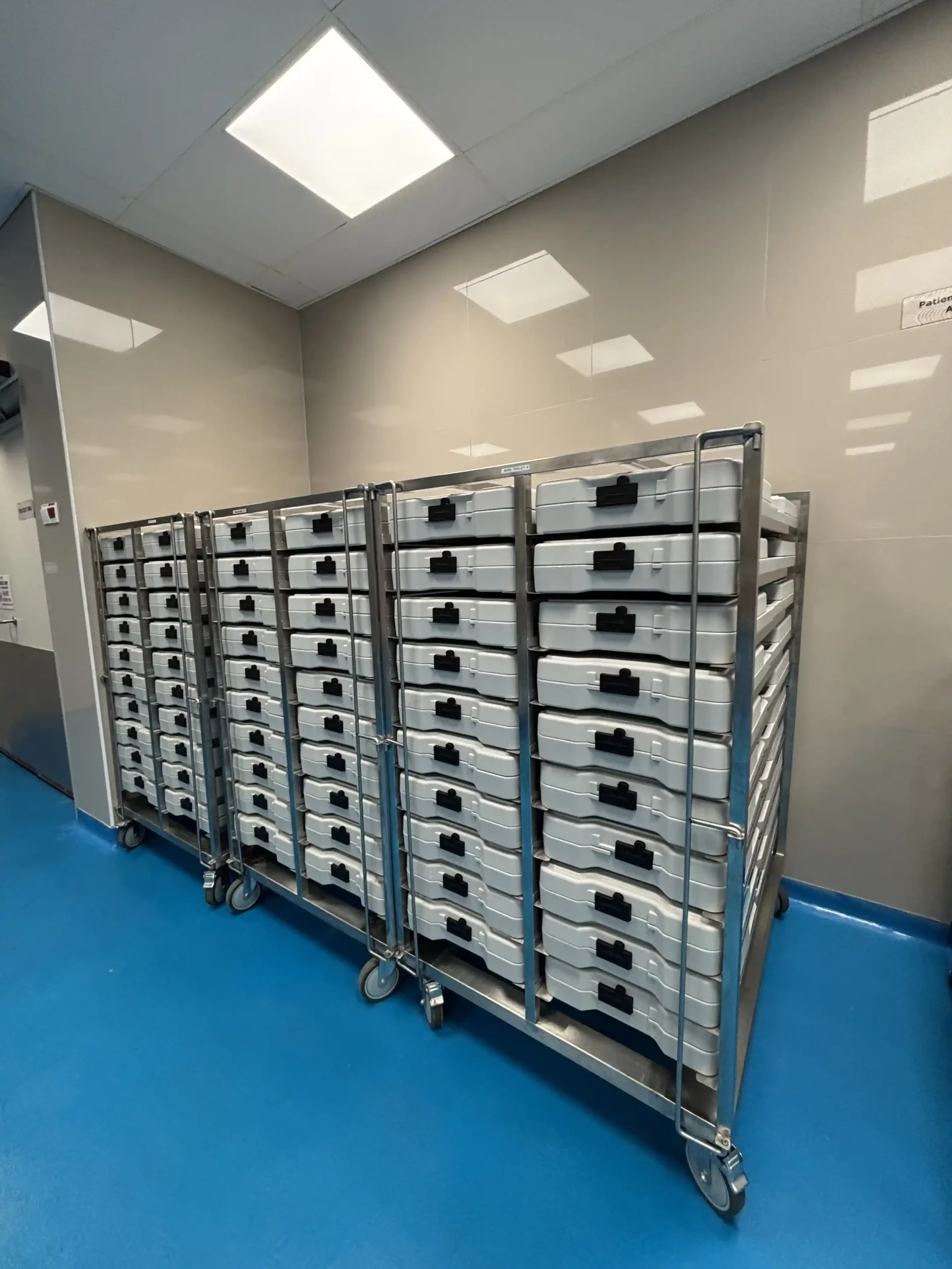 We supplied kitchen utensils, glassware and Menu Mobile Hospital Patient Meal Set that included CAMBRO tray, chinaware, flatware and Custom Made Heated and Non-Heated Trolley.